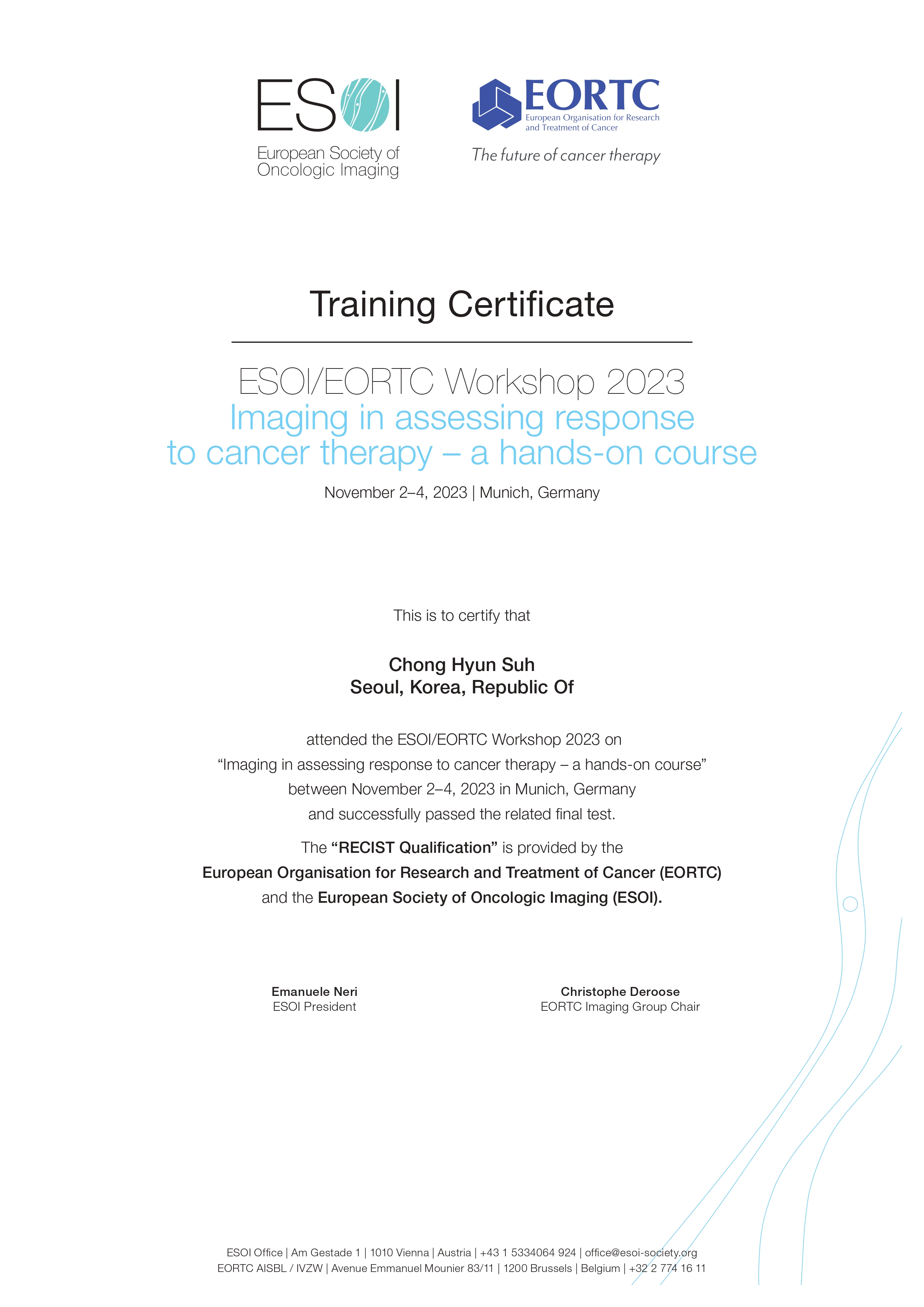 ESOI EORTC Workshop 2023 Certificate
